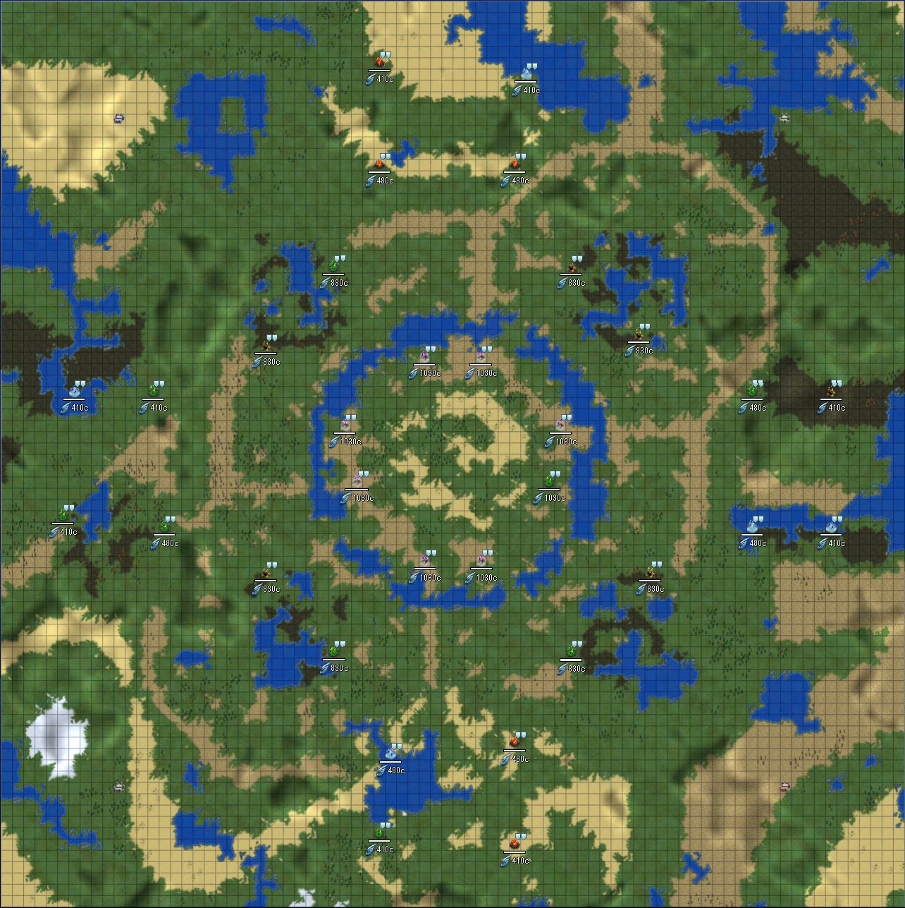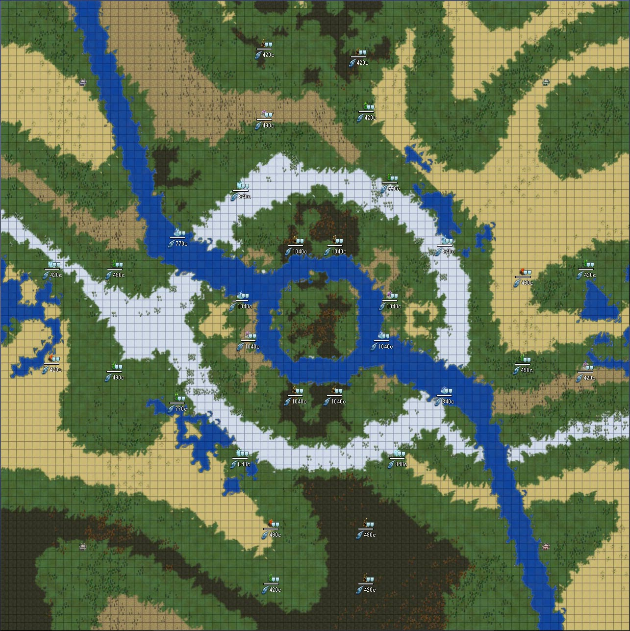 鉱床はマップの中央寄りほどクリスタル量が多い。 各マップは 80×80マス。